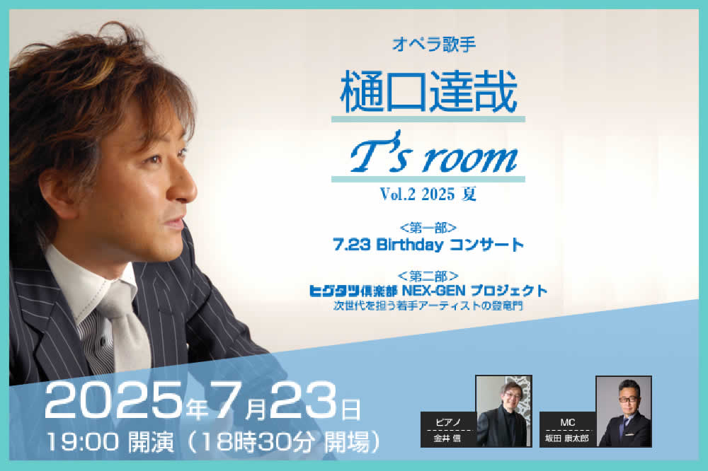 テノール歌手 樋口達哉 のプライベートイベント。前半は樋口さんのコンサート、後半は若手アーティスト対象のマスタークラスの二部構成でお届けします。